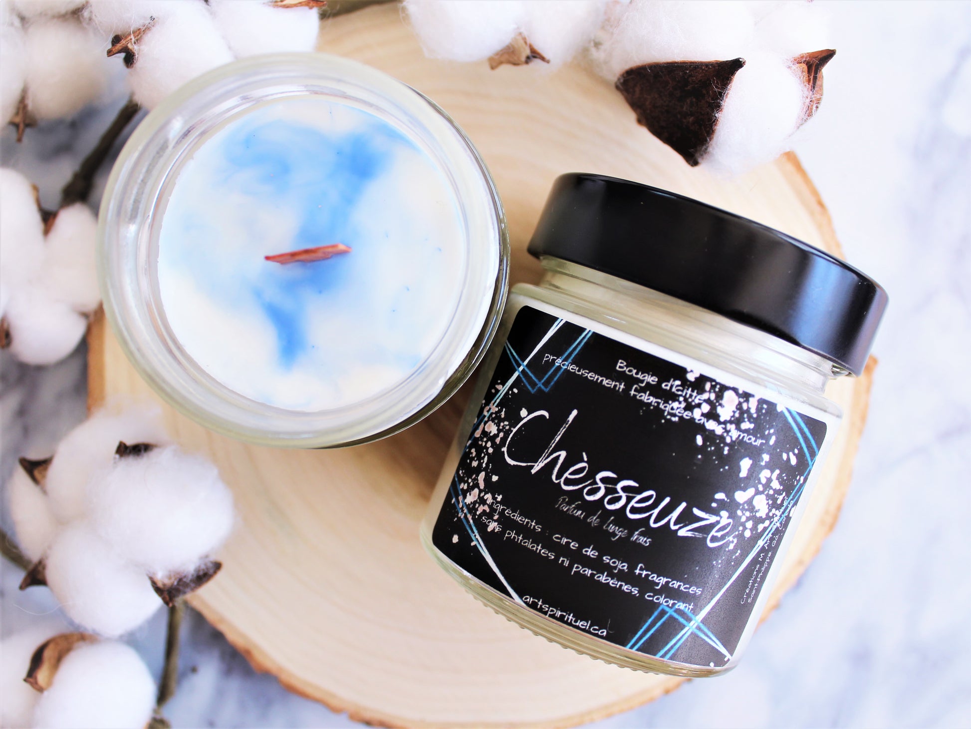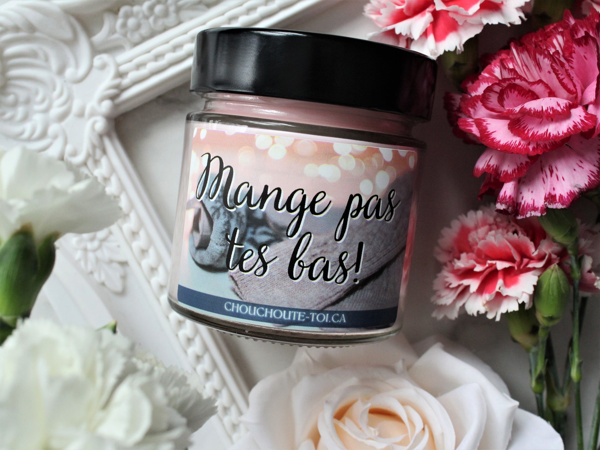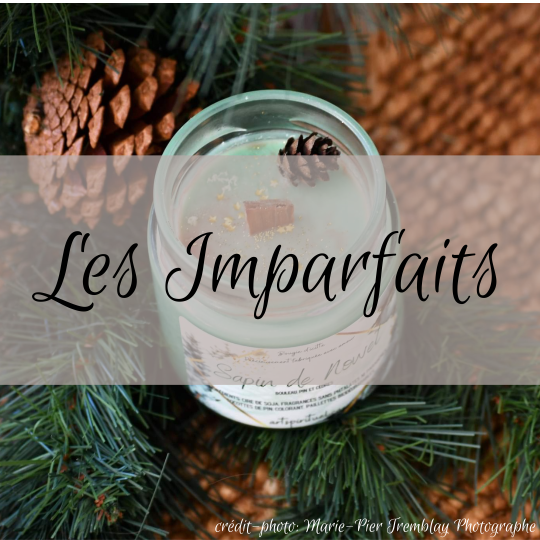 Bougies avec de légers défauts visuels, tel qu'une mèche décentrée, décoration, adhérence au pot, différente présentation des décorations.