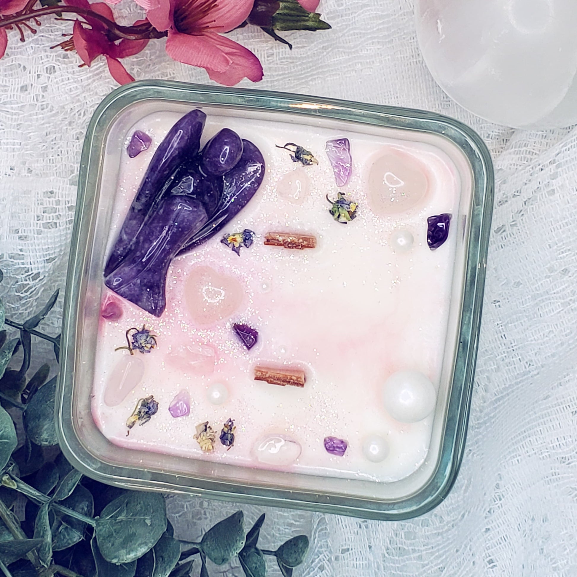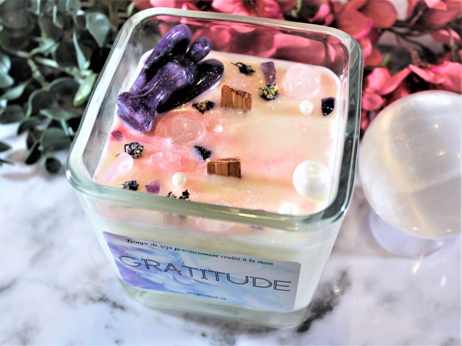 J'ai créé cette bougie, inspirée par un souffle angélique, avec les odeurs de la bougie Coeur ( Collection Chakras, avec des notes de rose, marjolaine, Ylang Ylang et cèdres).