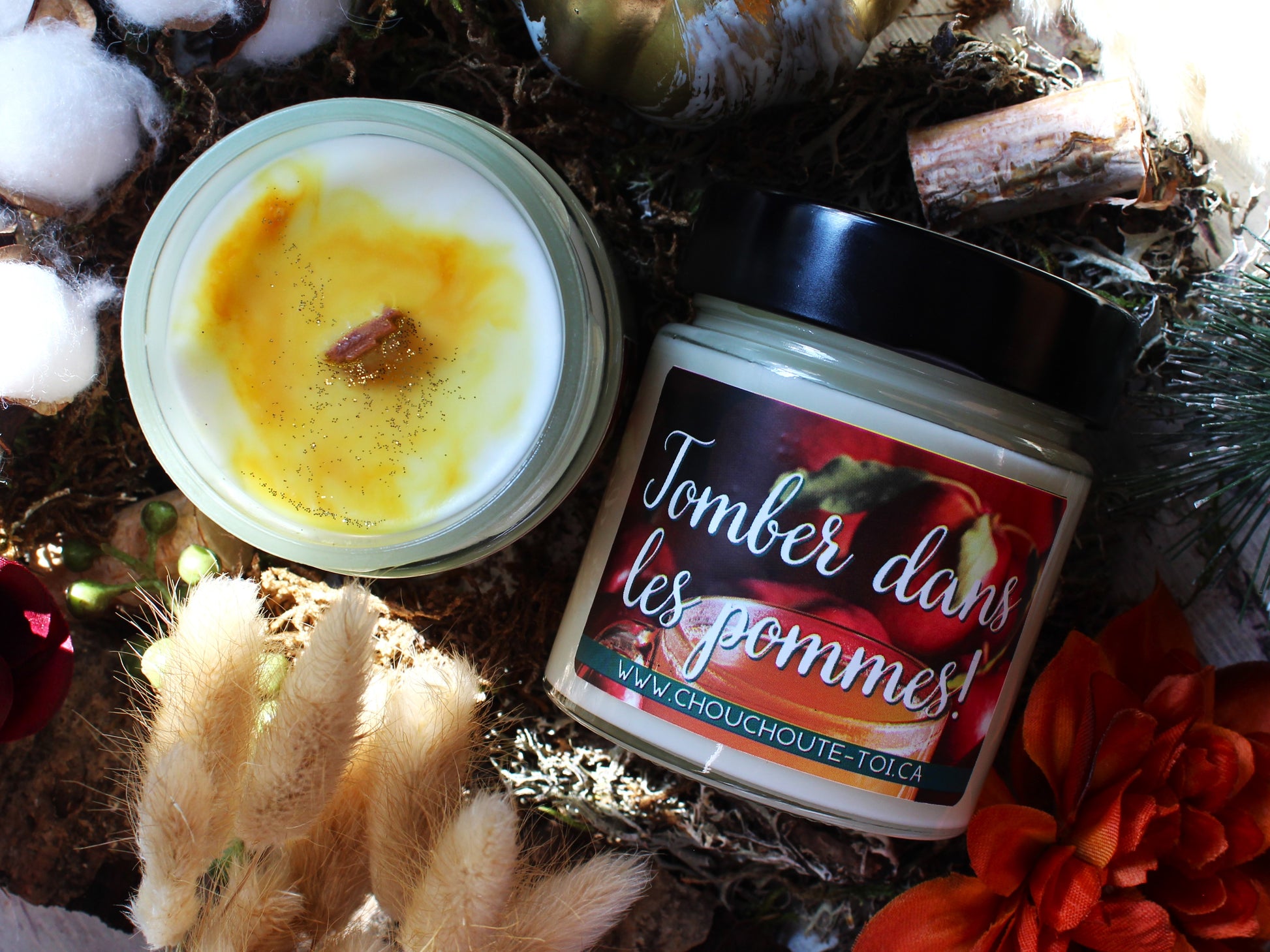 Tomber dans les pommes! Bougie de soja à l'odeur de cidre chaud.